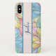 Bonito cor-de-rosa pastel e vidro azul manchado, veja iPhone X Case personalizado com seu nome. Altere o nome quando você solicitar.