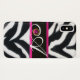 CAPA PARA iPhone, Case-Mate ZEBRA BRANCA NEGRA FUR FUCHSIA PINK GEM MONOGRAMA,