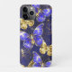 Composição de borboletas luxuosas de safira e joias de ouro em fundo azul texturizado.