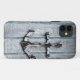 Âncora de madeira na casa de campo de madeira azul da praia.