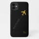 Um avião amarelo simples com rota pontilhada e nome personalizado
