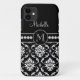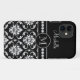 Esta caixa preto e branco monogrammed da case mate do damasco iPhone5 tem uma foto deste design encaixado no cobrir plástico duro. O design é compo de uma cor damasco floral, de um impressão de uma fileira dos diamantes brancos em uma listra e de uma área onde você possa adicionar sua inicial do nome e do monograma em pias batismais lindos do roteiro. Este cobrir do caso do iPhone 5 é a maneira perfeita de accessorize seu iPhone 5. seja à moda e feminino tudo ao mesmo tempo. Design por Elke Clarke©2012. Gráficos licenciados para o uso. Desenhista do contato para outras cores do fundo.