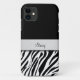 O iPhone feito sob encomenda do monograma 5 casos com teste padrão preto e branco das listras da zebra protegerá seu telefone no estilo! Personalize com todas as iniciais ou nome e mude a cor do fundo se você quer, este caso do iPhone 5 deixe-o levar seu telefone móvel no estilo e tenha-o aberturas para todos os portos e conexões.