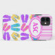 Monograma cor-de-rosa Chinelos coloridos e caso Tropical iPhone 5 surfboard Beach.