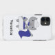 Um gato cinza onde uma roupa de guarda colorida em azul e branco e carregar uma bandeira azul com texto que você pode personalizar em uma capa de telefone!