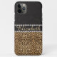 Personalize/personalize estes impressão do ponto do leopardo e design de couro preto com monograma branco dos cristais de rocha do diamante.