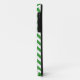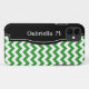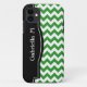 Maleta iPhone 5 na moda projetada com padrão zigzag verde e branco, um quadro preto sobre o lado esquerdo e personalizado com seu nome ou texto personalizado em branco sobre o quadro preto. Este design é perfeito para o uso vertical e horizontal do iPhone 5.