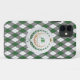 Este gabinete iPhone 5, com padrão de xadrez verde, cinza e argyle branco, monograma, tem uma coroa verde e dourada com folhas de louros e um esboço de uma bola de golfe e pode ser personalizado com seu nome, iniciais, monograma, logotipo da empresa, nome comercial ou outro texto.