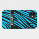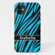 Padrão de impressão de stripe de zebra branca e tenda azul e azul-zebra preto com nome personalizado. Adicione seu próprio toque pessoal ao personalizar o nome do seu cheio ou as iniciais do monograma no nome preto e branco. Legal presente personalizado para meninas e senhoras que adoram impressões de animais da selva em cores divertidas.