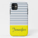 Padrão de listras branco, azul e amarelo moderno com nome personalizado