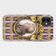 Neste iPhone 11 Case é uma obra de arte original de ZoeSPEAK, com um retrato do compositor de música clássica Wolfgang Amadeus Mozart. O retrato é um perfil definido em um quadro de ouro oval de ornamentado. A armação pende sobre um fundo de papel de parede roxo com cachos de uvas em filas e listras brancas e lavandas verticais.