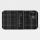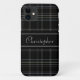 Caixa personalizada do iPhone 5 com nome ou monograma na banda preta com as riscas brancas sobre o teste padrão preto do Tartan.