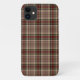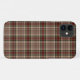 Capa de telefone com um padrão de xadrez clássico em tons de tano, verde e vermelho com realces roxos, marrom e pretos.