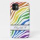 Maleta personalizada do iPhone 5 na moda personalizada com seu nome e projetada com um padrão de impressão zebra com listras zebra brancas e arco-íris.