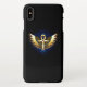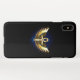 Tankh egípcio ouro com asas brilhantes e apadrinhadas sobre fundo preto. Símbolo mágico.