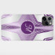 Capa de telefone de padrões geométricos roxos monogramas femininos elegantes. Um presente personalizado excelente para ela. Mude o roteiro inicial, comprar agora e a surpreenda.