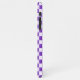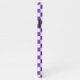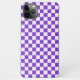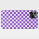A purple and white checkerboard pattern with alternating squares, creating a balanced design. The vibrant colors give a playful, energetic feel.