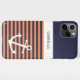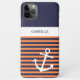 Linda âncora contemporânea de naves, em um padrão clássico e chico de faixas azul e laranja claro e marinho. Com espaço para personalizar ou personalizar com nome, iniciais ou monograma de sua escolha em um fundo de cor branca. Criado para o capitão, amante do barco, navegação, férias e dias de verão ensolarados e brilhantes na água ou na praia.