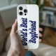 Capa de telefone com o melhor namorado do mundo em texto azul escuro 3D. Disponível para muitos estilos de telefones.