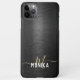 Elegante, chic e moderno monograma Dourado metálico escovado, preto escovado, o design Script apresenta textura preta metálica escovada, acentuada por um monograma dourado e um nome de guião cinza branca, fazer-o um na moda e acessório personalizado. Isso será perfeito como presente personalizado.