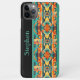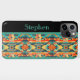 Bright and colorful Native American Aztec design phone case in shades of turquoise blue, terracotta, adobe tan and black accents. Personalize with your name on the left side in turquoise blue. Great gift for Father's Day, Christmas or for anyone who loves Native American and Southwestern design.