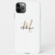 Moderno Dourado Monograma Girly Script Nome Chic White capas de iphone. Personalize esta elegante design de capa de telefone de com seu nome e monograma inicial em uma tipografia de chic, trendy e girly script. Presente perfeito para ela.
