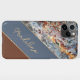 Capa Para iPhone Padrão de mármore azul escuro âmbar personalizado