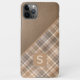 Xadrez de tartã branca, castanha, bege, esticada, creme de marfim, e uma textura falsa de couro. Com espaço para personalizar ou personalizar com um nome monograma ou inicial de sua escolha. Belo, moderno e legal cobrir para o motif motif motif motif motif motif motif, experiente e amante da arte, que quer proteger seu telefone de poeira e sujeira, visto e lágrimas. Este design está disponível para o Apple iPhone 6, 7 e 8 Plus, 10 ou X, XR, XS, 11, 12, 13 Mini, 14, 15 Plus e Pro Max Celphone capas. Mostre seu estilo, fique em voga e sinta-se na moda com um design único em um acessório de dispositivo móvel de sua escolha.