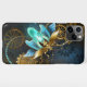 Barbeiro véu com asas transparentes azuis e lâmpada verde sobre fundo vestido, marrom, texturizado. Estilo Steampunk.