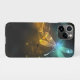 Voo de libélula brilhante, verde, desenhada artisticamente, com asas verdes e amarelas transparentes sobre fundo noturno brilhante com plantas pântanas e vagalumes. Dragonfly brilhante.