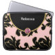 A bolsa de laptop chamativo do monograma com cor damasco e bling cor-de-rosa simulado de pedra preciosa do diamante e espaço que do monograma você pode personalizar com todo o nome, iniciais, ou mensagem. Este design protege seus eletrônicos portáteis tais como sua netbook, laptop, ou tabuleta no estilo chamativo e faz-lhe seus próprios.