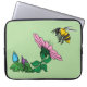Dois pequenos botões florais se amontoam atrás de sua mãe enquanto uma grande abelha se aproxima. A flor-mãe guarda as pequenas apresentando sua flor florescida ao inseto. Esta capa está disponível em tamanhos para o ajustado da maioria dos comprimidos, netbooks e laptop de 10", 13" e 15".