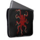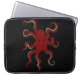 Uma luva para seu computador portátil com um polvo vermelho contra um fundo preto liso.