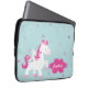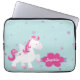 A bolsa de laptop personalizada que caracteriza um vôo mágico bonito do unicórnio no céu com estrelas roxas. Design bonito e do divertimento para o special para uma menina que ame unicórnios e pôneis mágicos. Presente monogrammed feito sob encomenda.