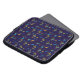 A laptop sleeve with a vibrant geometric pattern. It features colorful abstract shapes on a dark blue background, creating a dynamic and modern look.