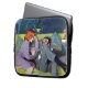 Artista: Mulher de Lynn Buckham | A em um vestido roxo e em um homem no terno que senta-se em um sofá verde.
