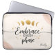 A inspiração do carregar com você em todos os lugares ✨ Esta bolsa de laptop apresenta fases de lua ouro e a poderosa citação "Abrace cada fase." Um design chic e moderno que combina elegância, motivação e beleza celestial. Adicione seu próprio nome na base para um toque verdadeiramente personalizado — perfeito para uso diário, presentes ou adição de uma vibração exclusiva ao seu estilo de trabalho. 🌙 💻