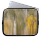 A imagem captura uma visão de proximidade de um corpo de água calmo com reflexo de árvores em sua superfície. A água está calma, criando um efeito espelho que reflete a folhagem circundante. As árvores são predominantemente um verde-muda, com pistas de amarelo e marrom, sugerindo uma estação autóctone.