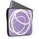 Um desenho de abstrato, constituído por uma linha branca circular em movimento, atravessa a superfície violeta clara deste saco de Eletrônicos.