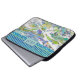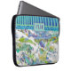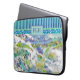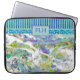 A minha pintura de abstrato faz deste laptop uma peça de conversação a carregar. As amostras de azul e verde em branco são texturizadas e tendas. No topo, adicionei algumas listras gráficas coloridas e bordas para complementar um pouco a pintura e jazz. O monograma apresenta tipografia em roxo sobre fundo verde de espuma do mar para combinar com a pintura — ambas podem ser alteradas para lhe servir.