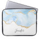 Bolsa de laptop com um belo design azul-gelado com sotaques dourados falsos.