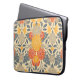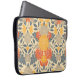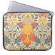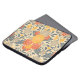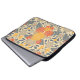 Esta bolsa de laptop tem flores e folhas em tons de cinza amarela, laranja e azul sobre fundo creme.