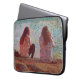 Esta bolsa de laptop mostra uma foto pontilhista de duas mulheres falando no topo de um pico rochoso na Ilha Lopez. A localização é um Monumento Nacional no Ponto de Iceberg nesta ilha em San Juans, no estado de Washington, acessível apenas por barco.