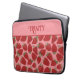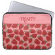 Essa bolsa de laptop bonito está pronta para ser personalizada com um nome. Esta design parece quase boa o suficiente para comer com as minhas ilustrações realistas de morangos vermelhos suculentos colocados contra um fundo rosa bonito. Os gráficos de fruta são representados em tons de vermelho e creme com folhas verdes. Esta bela paleta de cores ricas dá a esta design uma aparência bonito e elegante. Esta design coordena-se com outros designs da coleção de histórias de morango de Delfuneum.