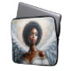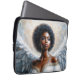 A bolsa de laptop apresenta trabalho de arte de uma mulher de pele escura com uma coalhada afro, halo e asas grandes. Retrato de pintura a óleo que apresenta uma estética angelcore rica em melanina com alguém que se assemelha a uma mulher afro-americana.