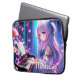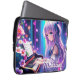 Bolsa de laptop personalizada. Menina de anime bonito tocando piano cercada por estrelas e flores em roxo, azul e rosa.