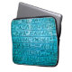 Uma Bolsa de laptop com hieróglifos antigos gravados na pedra em azul.