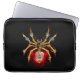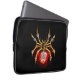 Aranha mecânica, com pá-pá de ouro, engrenagens de latão e uma lâmpada de vidro vermelha sobre fundo preto. Estilo Steampunk.