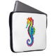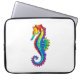 Articulação artificial, brilhante, arco-íris, cavalo de mar poligonal sobre fundo branco. Tatuagem brilhante.