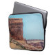Foto paisagística de um arco que se forma numa abertura de um planalto no deserto de Utah. O céu está limpo de nuvens e é um azul macio. As pedras e areias são matizes de castanhos de laranja para bege. Alguns arbustos verdes estão espalhados pelas bordas das formações. Imagem Copyright ©2024 Kimberly J Tilley. zazzle.com/store/developingnature